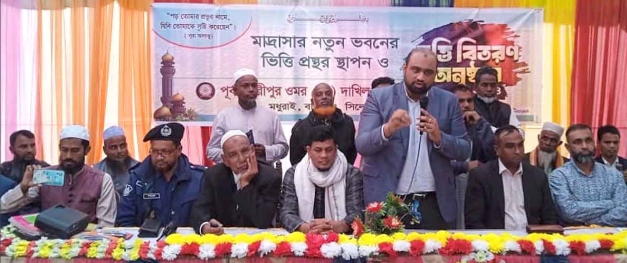বালাগঞ্জ উপজেলার পূর্ব গৌরীপুর ইউনিয়নের ওমর (রাঃ) দাখিল মাদ্রাসায় নতুন বর্ধিত ভবনের ভিত্তিপ্রস্তর স্থাপন ও বৃত্তি বিতরণ অনুষ্ঠিত হয়েছে। শনিবার (২১ ডিসেম্বর) সকাল ১০টায় এ উপলক্ষে আয়োজিত অনুষ্ঠানে প্রধান অতিথি হিসেবে ভার্চুয়ালি যুক্ত হয়ে বক্তৃতা করেন শিল্প মন্ত্রণালয়ের অতিরিক্ত সচিব আনোয়ার হোসেন চৌধুরী। অনুষ্ঠানে সভাপতিত্ব করেন বিশিষ্ট শিক্ষানুরাগী, রাজনীতিক এমএ রব সিদ্দিকী।