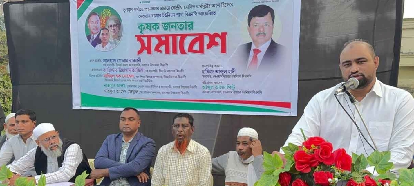 বালাগঞ্জ উপজেলার দেওয়ান বাজার ইউনিয়নের জনকল্যাণ সরকারি প্রাথমিক বিদ্যালয় মাঠে অনুষ্ঠিত এ কৃষক জনতার সমাবেশে প্রধান অতিথির বক্তৃতা করেন সিলেট জেলা বিএনপির সহসভাপতি ও বালাগঞ্জ উপজেলা বিএনপির সভাপতি আলহাজ গোলাম রব্বানী। সভাপতিত্ব করেন দেওয়ান বাজার ইউনিয়ন বিএনপির সভাপতি হাফিজ আব্দুল হাদী।