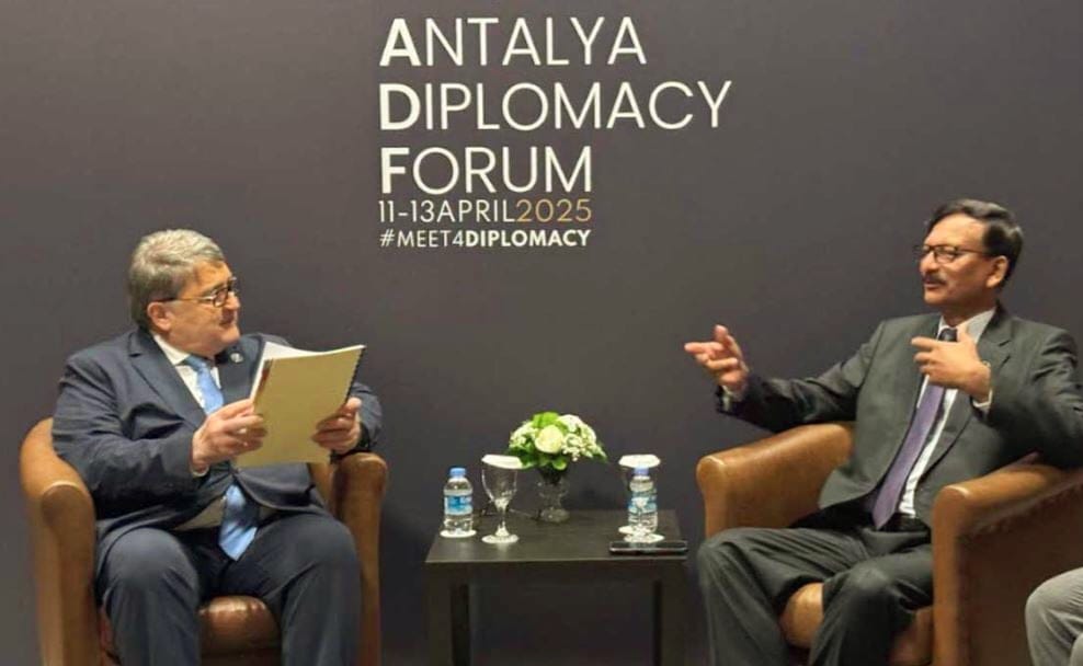 তুরস্কের আন্টালিয়ায় চলমান ‘আন্টালিয়া কূটনৈতিক ফোরাম’-এর ফাঁকে শনিবার (১২ এপ্রিল) রোমানিয়ার পররাষ্ট্রমন্ত্রী এমিল হুরিজেনুর সঙ্গে বৈঠক করেছেন বাংলাদেশ সরকারের পররাষ্ট্র উপদেষ্টা।