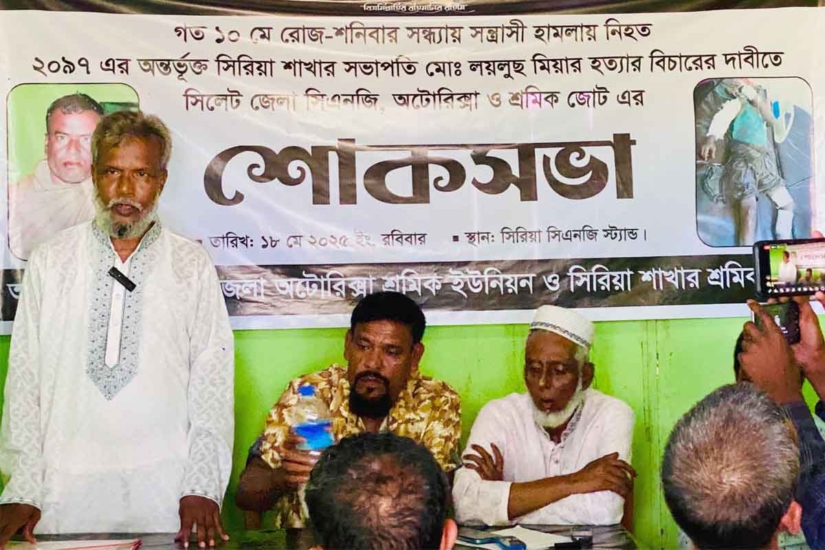 গত ১০মে সন্ধ্যায় দু’পক্ষের মারামারির ঘটনায় হামলায় নিহত অটোরিক্সা শ্রমিক ইউনিয়ন (রেজি. নং-চট্ট-২০৯৭) বালাগঞ্জের সিরিয়া উপশাখার সভাপতি মো. লয়লুছ মিয়ার হত্যাকারীদের গ্রেফতার ও শাস্তি দাবি জানিয়েছেন এলাকাবাসী ও শ্রমিক নেতৃবৃন্দ। আজ রোববার (১৮ মে) বিকালে অটোরিক্সা শ্রমিক ইউনিয়ন (২০৯৭) বালাগঞ্জ সিরিয়া উপশাখার শ্রমিকবৃন্দের উদ্যোগে এক শোকসভায় বক্তারা এ দাবি জানান।