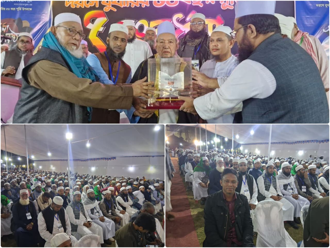 সম্মাননা পদক তুলে দেন—শায়খুল হাদিস মাওলানা আব্দুস শহীদ চাঁম্পারকাঁন্দি, শায়খুল হাদীস মাওলানা আব্দুর রহমান কলুমা, শাহ সুলতান রহ. মাদরাসার মুহতামিম মাওলানা রেদওয়ানুল হক চৌধুরী রাজু, উমরপুর মাদরাসার শিক্ষাসচিব হযরত মাওলানা মাহমুদুল হাসান সেলিম, মাওলানা মনসুর আহমদ।