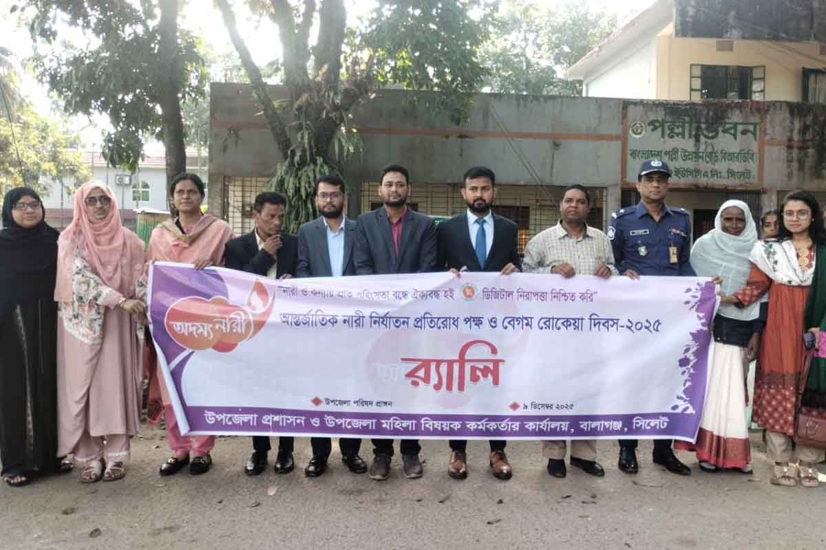 বালাগঞ্জে নানা কর্মসূচি পালনের মধ্য দিয়ে আন্তর্জাতিক নারী নির্যাতন প্রতিরোধ পক্ষ ও বেগম রোকেয়া দিবস পালিত হয়েছে। আজ মঙ্গলবার (০৯ ডিসেম্বর) সকালে বালাগঞ্জ উপজেলা প্রশাসন ও উপজেলা মহিলা বিষয়ক অফিসের উদ্যোগে এ উপলক্ষে র্যালী, আলোচনা সভা ও জয়িতাদের মধ্যে পদক প্রদান অনুষ্ঠিত হয়। উপজেলা হলরুমে আয়োজিত আলোচনা সভায় সভাপতিত্ব করেন উপজেলা নির্বাহী অফিসার মো. মেহেদী হাসান।