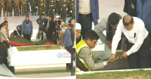 বুধবার (৩১ ডিসেম্বর) বিকেল ৪টা ৪২ মিনিটে তাঁকে জিয়াউর রহমানের কবরের পাশেই সমাহিত করা হয়।