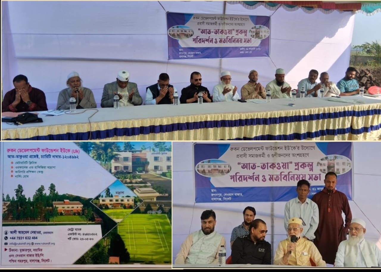 রুকন ডেভেলপমেন্ট ফাউন্ডেশন ইউকে’র উদ্যোগে প্রবাসী সমাজকর্মী ও গুণীজনদের অংশগ্রহণে ‘আত-তাকওয়া’ প্রকল্প পরিদর্শন ও মতবিনিময় সভা অনুষ্ঠিত হয়েছে।