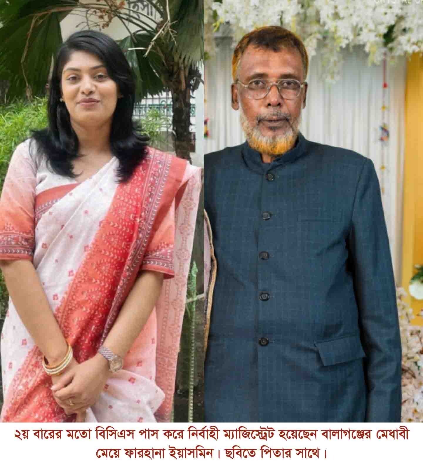এদিকে বড় মেয়ে ফারহানা ইয়াসমিন দু’দফা বিসিএস পাসের ব্যাপারে উচ্ছ্বাস প্রকাশ করেছেন সৌদি আরব প্রবাসী পিতা আব্দুল লতিফ নানু মিয়া। তিনি বলেন, আজকে আমি অনেক আনন্দিত। মহান আল্লাহপাকের দরবারের শুকরিয়া জানাই, তিনি দেশ ও জাতির সেবায় আমার মেয়েকে সুযোগ দান করেছেন। আমি আশা করি, ফারহানা ইয়াসমিন তাঁর কর্মজীবনে কর্তব্যপালনে সততা বজায় রাখবে এবং দেশ ও জাতির সেবায় নিজেকে উজাড় করে দেবে। এ বিষয়ে আলাপকালে ২য় বারের মতো বিসিএস উত্তীর্ণ সহকারী কমিশনার ও নির্বাহী ম্যাজিস্ট্রেট ফারহানা ইয়াসমিন তাঁর এ কৃতিত্বের জন্য পিতা আব্দুল লতিফ নানু মিয়া, মাতা নির্গম বেগমসহ তাঁর শিক্ষকদের প্রতি গভীর শ্রদ্ধা এবং ভালোবাসা জানিয়েছেন। তিনি তাঁর কর্মজীবনে সফল হতে সকলের কাছে দোয়া কামনা করেছেন।
