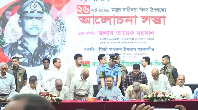 মহান স্বাধীনতা ও জাতীয় দিবস উপলক্ষে আয়োজিত এক আলোচনা সভায় উপস্থিত হয়েছেন প্রধানমন্ত্রী তারেক রহমান।